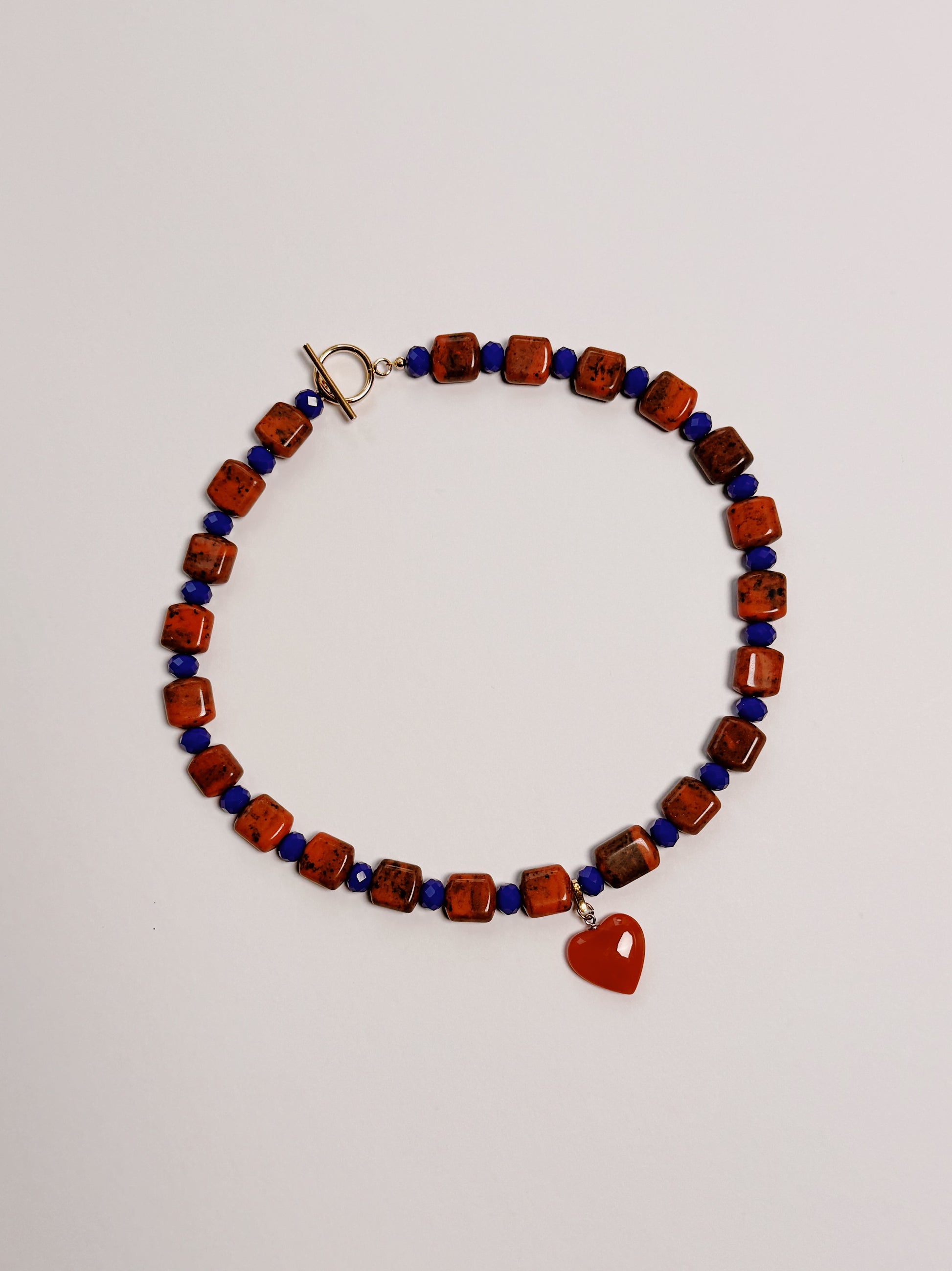 Deep orange glass heart pendant is detachable for 2 necklace styles in 1