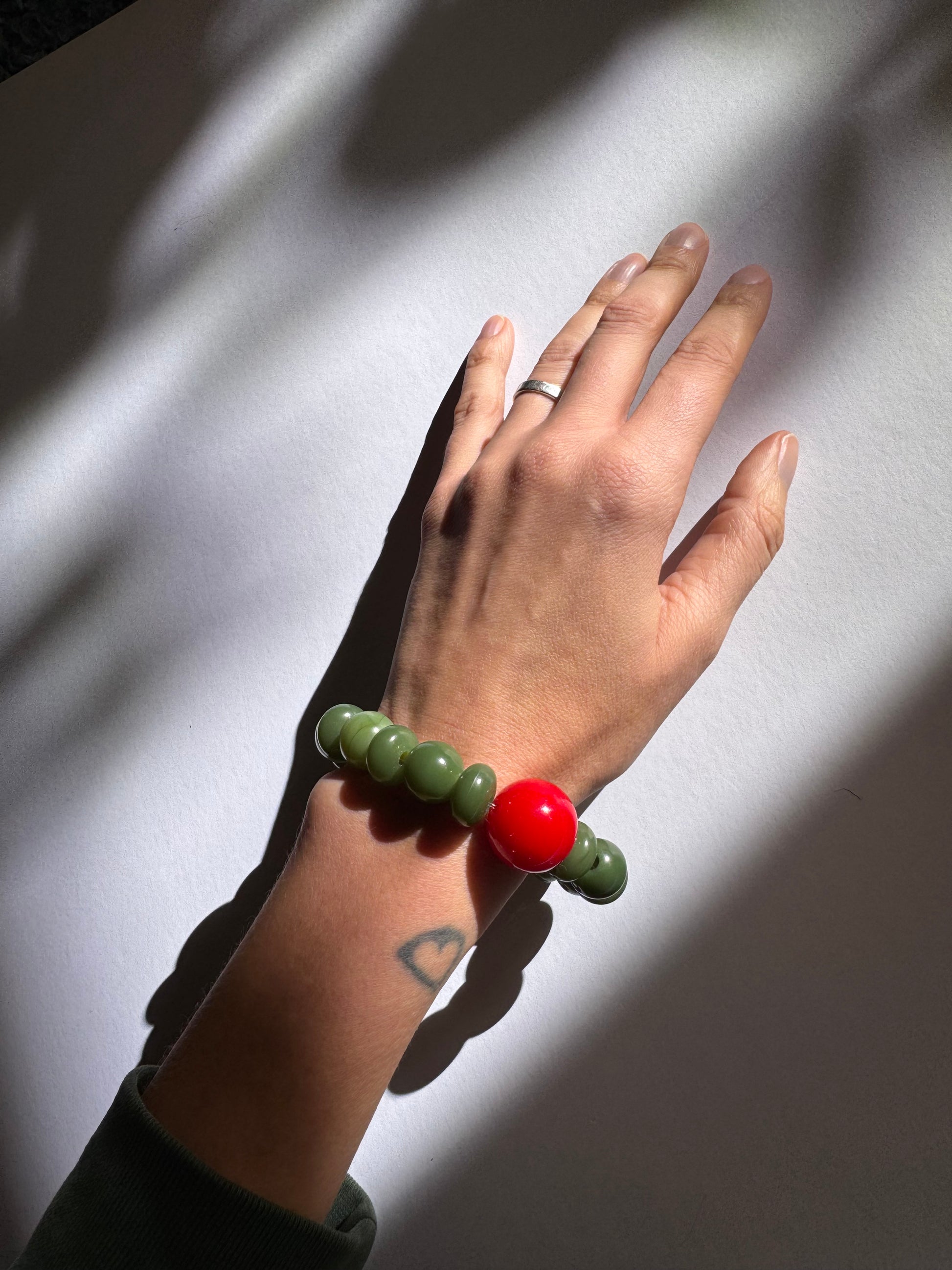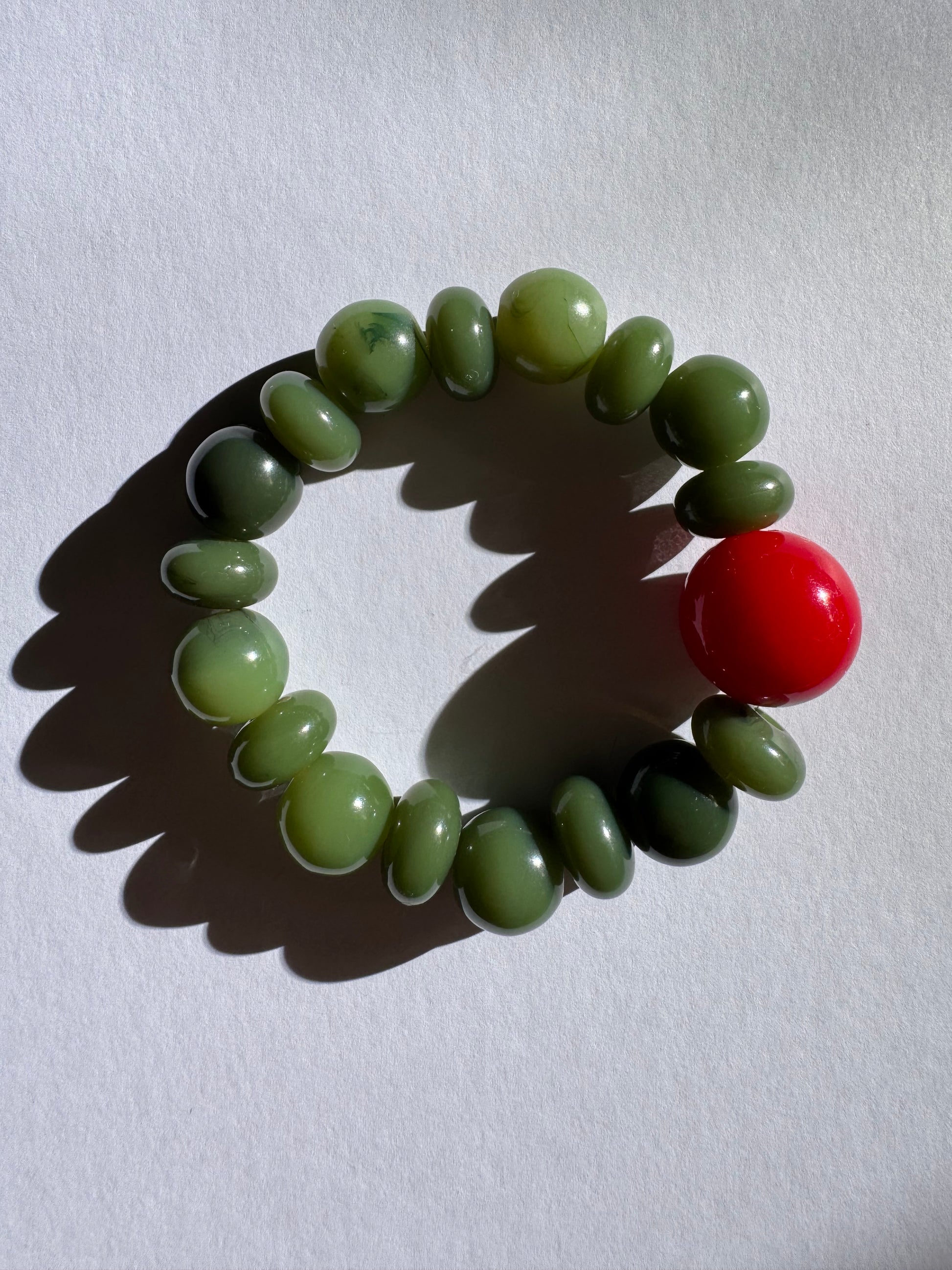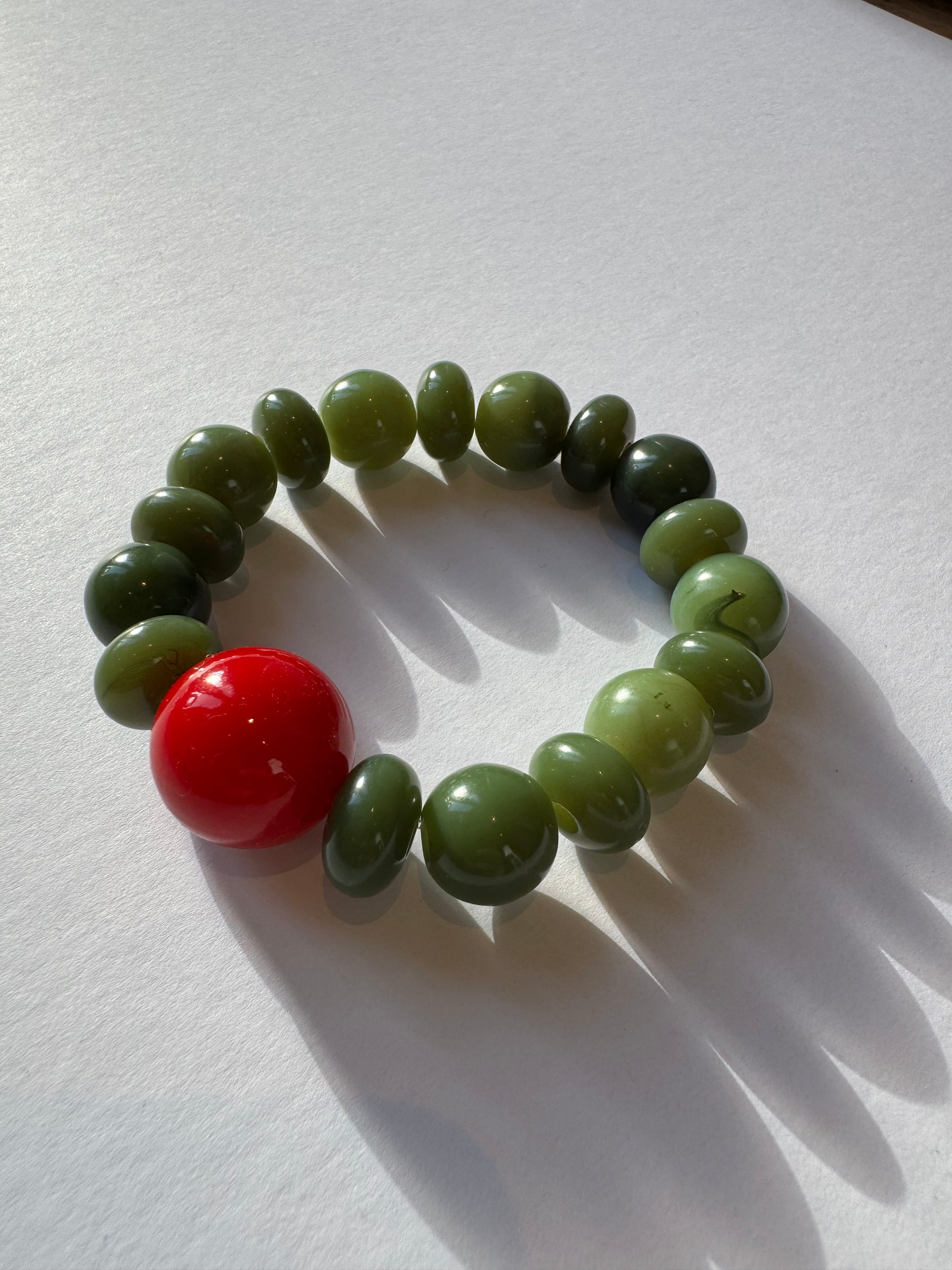 Cool and modern lightweight bracelet, strung on elastic for ease of wear and comes in 2 sizes. Beads sourced from deadstock vintage accessories warehouse (approximately early 1980s)